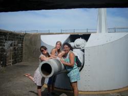 Zu erst waren wir auf so einer Militaerburg oder so. Da hatte man eine richtig geile Aussicht auf Niteroi und Rio de Janeiro. Fotos koennt ihr euch dazu angucken in der Galerie *Ausflug am 11.08.*. Dort oben habe ich dann auch das erste Mal in meinem Leben Baumwolle gesehen und in der Natur wachsende Kakten. Auf der Burg haben wir auch eine Frau getroffen, die ein Jahr in Deutschland gewohnt hat, also deutsch konnte! ^^
